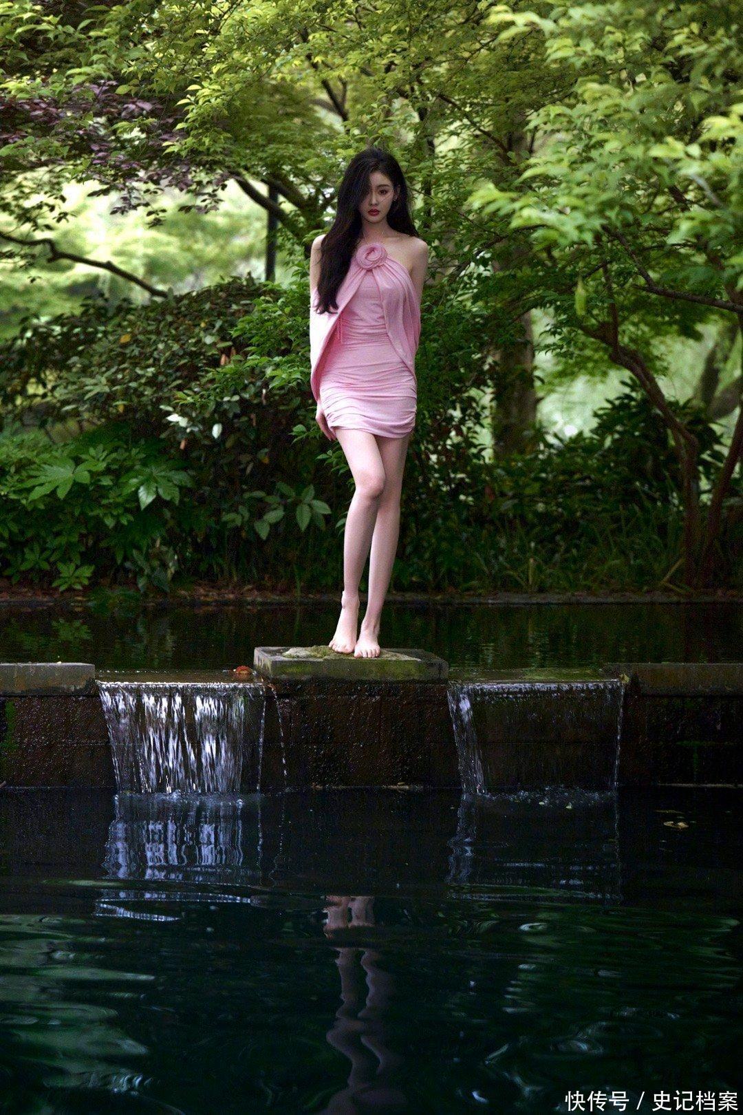 这身粉丝抹胸裙卓著符合张天爱这种体型把她那小蛮腰以及呼之欲出的行状线给知道的恰到平正。