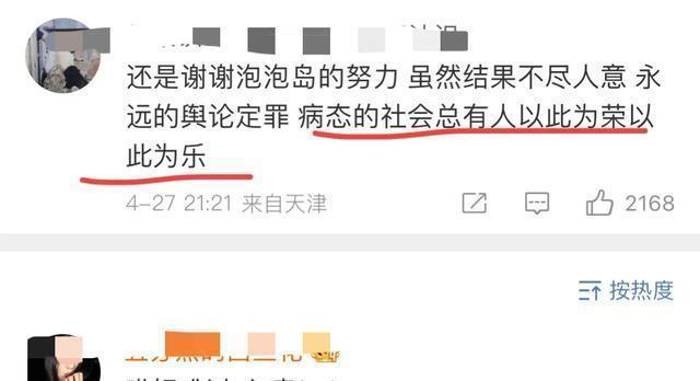 辩驳区有感谢泡泡岛死力的,真实还说“病态的社会”。 ???病态的是谁?一个中国东说念主,真实可爱有态度问题的明星? 就说一句“我是中国东说念主”这样难吗?作念不到?抱歉,大陆不接待。