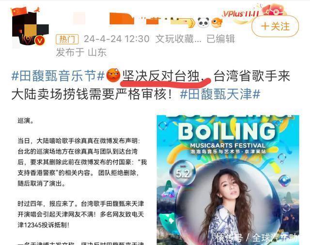 从泡泡岛官宣田馥甄将在5月2日,在天津音乐节压轴献唱开动,骂声不休。